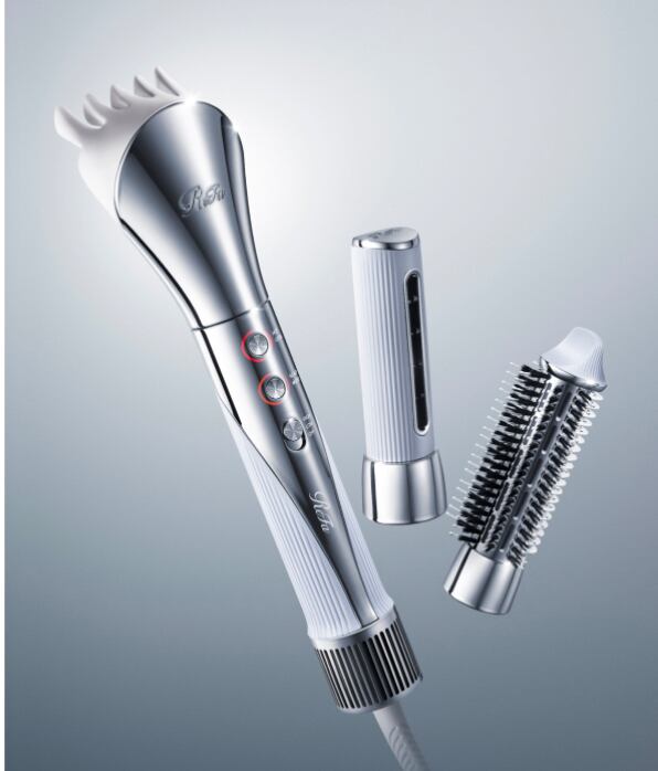 プロがヘアプローでつくり上げるような、顔がキュッとみえる「ひし形シルエット」を、3つのアタッチメントによって誰にでも再現可能にした軽量スティック型。